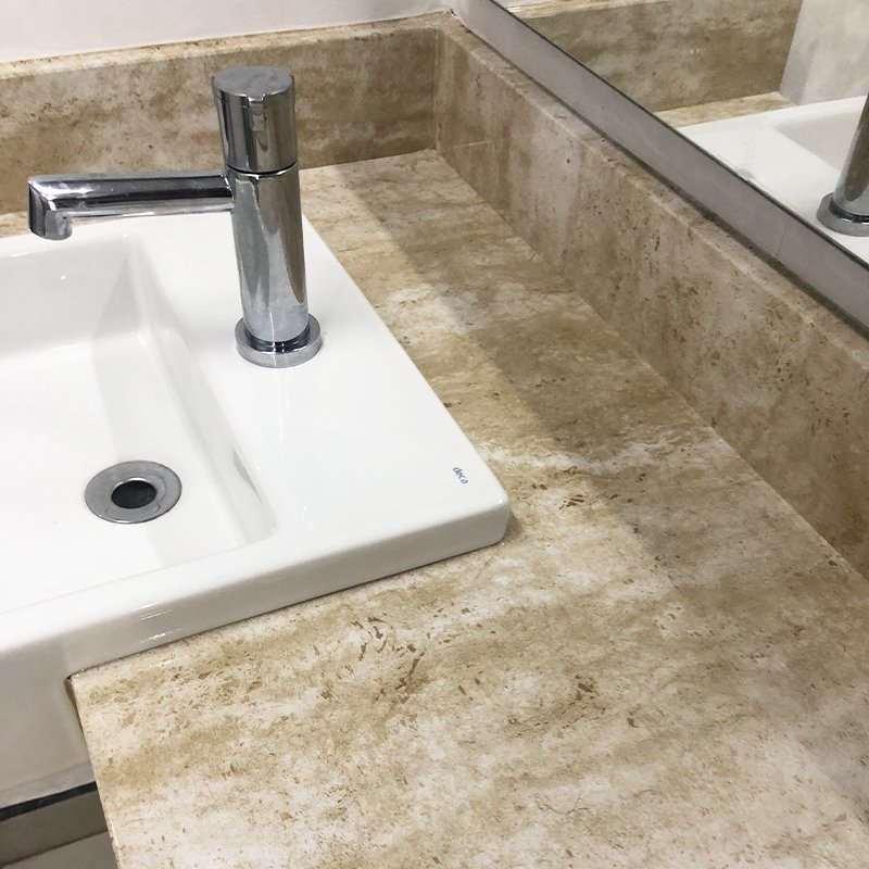 Gold Pedras é uma linha de produtos para decoração com diversas cores, frontal em vinil polimérico calandrado, indicado para aplicações internas e externas, com adesivo permanente sensível a pressão e liner em papel siliconado, resistente à produtos de limpeza de uso doméstico.